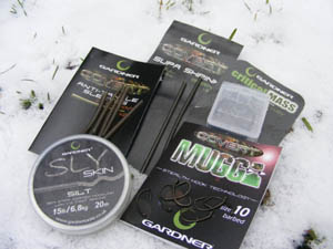I rushed back to my van to retrieve some of my essential fishing gear. My rig choice was four feet of 25lb Mirage Fluorocarbon leader with Critical Mass Putty dotted along it to pin it down. The rig also included a Covert Lead Clip and Tail Rubber, a 1oz Gardner Flat Pear lead with eight inches of Sly Skin Silt hook link. I attached this to a Size 10 Covert Mugga and I added a small piece of Supa Shrink to the shank of the hook for extra hooking ability.