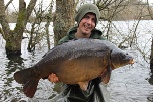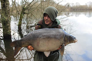 It was soon dark and the fish seemed to have disappeared and another cold fishless night was on the cards. I awoke around 5am to a tufftie picking up my middle rod so I quickly got a fresh rig and bait on the spot before climbing in the bag again as it was now blowing a north easterly straight in my face and was freezing cold! At around 9am just as my mate turned up I had another take on my right hand rod but I lost it soon after hooking it. The rod was re-positioned within minutes and every other angler had packed up and gone home which I was extremely pleased about as it seemed they had woken up again. Over the next half hour I must have seen fifteen shows over my spot and they were clearly having it big time. The next bite produced one of the lake’s A-Team a fish known as “Fingers” that only makes one or two appearances each year and weighed a hefty 34lb 14oz. The fish looked immaculate in its winter colours and seconds after returning it my middle rod also on the spot roared off and after a spirited fight a beautiful 24lb 6oz common lay in the net.