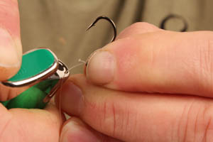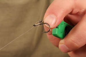 D-rigs can be tied with either fluorocarbon or a copolymer, using a straight pointed hook – preferable a pattern with a straight eye or slightly out turned eye (either an Incizor or a Chod hook). With these materials the finished rig ends up very subtle looking. This rig camouflage is enhanced by using a slow sinking hookbait as it tends to settle over the hook – and what better camouflage can there be than that!