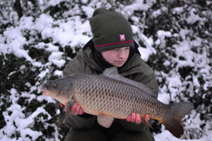 My first trip this year was when the country was covered in snow towards the end of January. Fellow Gardner sponsored angler Tom Oliver was off in search of a carp or two in the snow on the runs water on his syndicate, so I tagged along on a guest ticket. We were the only ones who had braved the weather so were soon setting up in “The Point” where Tom had been catching from lately. I went on the right, and flicked out some short zigs, which I thought would give me the best chance of a bite at this time of year. It seemed this was the right decision when a few hours later one of the zigs was off to a flyer, the result being my first carp in the snow, a common of around 12lb! That was the end of the action for me, but Tom showed me how it was done, catching six in a very short space of time the next morning, including all three rods going at the same time!