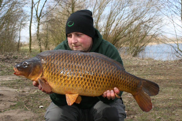 I watched the water for ages, no signs of any fish in front of me or to the right so I wondered into the next swim to chat with an angler there. While we were stood chatting and I gained a little more info about the place a carp snatched at the surface and caused a little disturbance about sixty yards out. The wind was getting up and blowing across the lake from behind us, I thought the fish had taken an insect off or just below the surface. I said to Dave that zigs might be worth a go and it turned out that he already had one out which eventually ripped off an hour or so later. I did some nice pictures his mid twenty common and unfortunately Dave had to pack up due to family commitments.