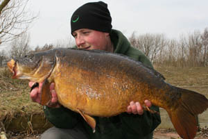 I left the house early and as I made my way over the Pennines on the M62, I was reminded that we hadn’t yet left the winter behind us. Huge mounds of ice were piled up on both sides of the motorway on the embankments, I felt cold just looking at it even though it was warm in my van! It was light when I reached the fishery and as you can drive around the lakes I parked up by a swim that was pretty central on the new lake. It was bleak to be honest, the wind was cold and after watching the lake for a good half hour, I had no clue as to where the fish would be.