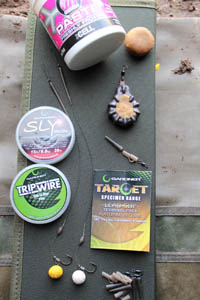 I also managed a quick night at Argal the following week where the wind was blowing in a lovely southwesterly direction. The lake was fairly busy with the ‘going’ swims gone so I had little choice and resolved to set up in the teeth of it. I decided to go with single pop ups on hinge stiff rigs with my white Blackcurrant Special hook baits (see Blackcurrant Specials under the articles page if you want to use these hook baits). My hinge stiff rig consisted of a size 6 Gardner Chod hook knotless knotted to 20lb Trip Wire. I then stripped back a length of 15lb Sink Skin and tied this to the Trip Wire using an Albright knot. The knot is then used to mount the Critical Mass putty around to balance the hook bait. It’s a cracking rig for singles and the only other thing I like to do is use a Gardner Grappler lead and push Mainline paste into the lead. This gives an extra attraction around the hook bait along with extra confidence!