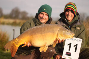 The draw came and we stood nervously as names that were not ours got read out and we were looking in a bad position for a good draw. We finally came out of the hat second to last and luckily for us our second choice swim was still available. I quickly called out peg 11 and we happily made our way over to our swim. As we were setting up we must have seen around fifteen different shows in our swim and we were full of confidence for some quick action. On the sound of the first hooter the masses set to work with marker rods and spods and we felt sure this would spook any fish in our swim so decided to bait up instead with PVA bags of maggots and a catapult. The venue is dominated by maggots and it is normally all the carp will eat so we had ensured we had enough taking ten gallons with us.