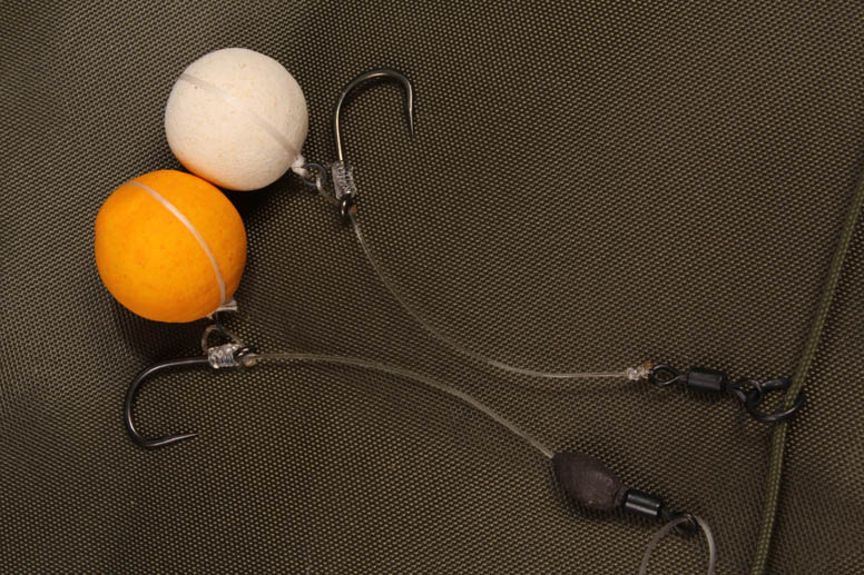 Finally never rule out fishing a pop up and a bottom bait together this method known, as a snowman rig can be a brilliant way to catch carp. You can tie a snowman rig in the same way as you would tie your normal rigs but instead of your usual hookbait choice put both a bottom bait and a pop up on the hair. By putting the bottom bait on first (nearest to the hook shank) followed by a pop up you will get a critically balanced bottom bait that sits on the bottom literally like a snowman (hence the name). I have used this method in France and have caught a lot of fish on it using a 20mm bottom bait in conjunction with a 15mm pop up and the presentation is brilliant especially for big carp. You can also tip a bottom bait with a piece of artificial corn or a piece of trimmed down foam or a small bright pop up, which will add a bit of visual attraction to your hookbait.
