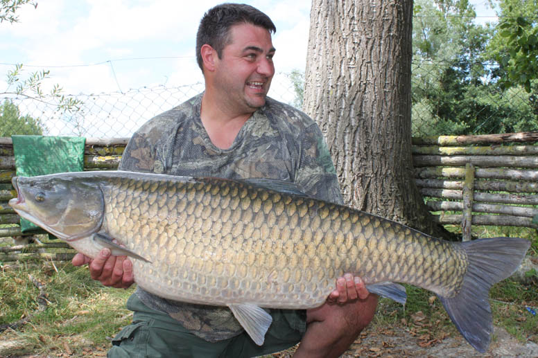 Again as night fell we started to see fish show on the long range spot the takes started earlier as I was latched into a hard fighting fish at 11pm once my friend had helped with the landing we saw that again it was a big thirty at 37lb. We managed a total of eight takes for the night, the biggest weighing 38lb. After breakfast whilst sitting watching the water my cave rod was away, I was on it in a flash and this fight felt different. Lots of shaking of head then I saw the culprit a whopping great grass carp! We netted it quickly and unhooked it in the net, it was well over forty. These things go mental on the bank, so it was released straight away.