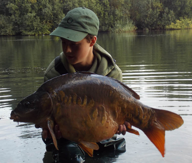 I awoke the following morning and I was surprised by the lack of action. I walked down to see if my mate had had anything but they hadn’t ether. At around 11am I had another take, which weeded me up soon after. After steady pressure I managed to get it all moving again and I was unsure whether I was still attached to the fish. As it neared the edge I could see a big ball of weed and somewhere in the middle I could just make out the head of a carp. It was slowly coming towards the net but as soon as the weed uncovered its head it shot down in the margins. After steadily leasding it back my mate quickly slipped the net under it. We instantly recognised it as Pablo and it weighed in at 31lb 6oz!