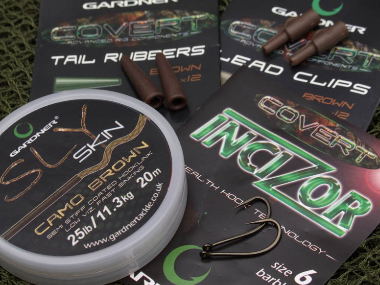 I caught the two fish using a blow back rig made from a long piece of Gardner Plummet Leadcore, a size 8 Covert Kwik Lok Swivel, Covert Lead Clip and Tail Rubber, 25lb Brown Sly Skin, a size 6 Covert Incizor and a 3oz Gardner Distance Lead brown. My hookbait was an 18mm Hybrid boilie tipped off with a 12mm Clockwork Orange pop-up.
