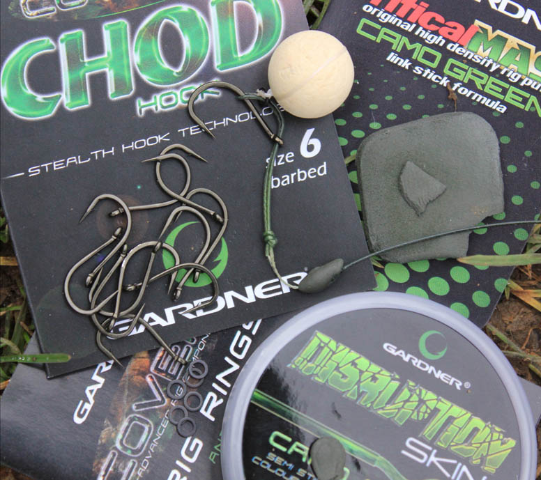‘Covert’ Lead Clips, with the lead arm cut down for even enhanced lead to ejection completed the end tackle. The rigs themselves would comprise of the ever faithful multi-rig, or “Johnny Mac” rig as it’s widely known. I’ve caught a lot fish on this rig over the years and it’s never let me down! The hooklink would comprise of the Disruption ‘Skin’ camo green in 25lb breaking strain which again would blend into the surrounding weedy bottom that I would be fishing over. A size 5 ‘Covert’ Chod hook would complete the rig. The ‘Covert’ finish on the Chod hook is a matt greenish color which is another percentage point towards outwitting these wary carp in gin clear water. To me it’s all about blending in to the surroundings, especially when the water at this venue is like tap water.