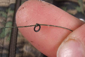 Step 3. Tie on a Covert Ring Ring using an overhand knot.