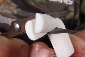 Step 7. Cut off a cylinder of Gardner Zig Rig foam into two pieces as shown.