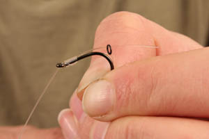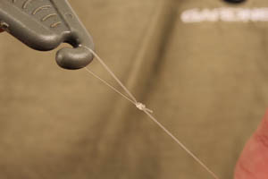 Step 1. Start of with a knotless knot – for D-rigged bottom baits and our chod rig about 9 turns is about right.