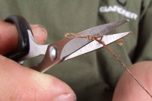 Step 5. Mount a piece of buoyant imitation corn from Enterprise Tackle onto the hair length ways.