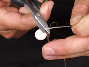Step 6. Tie on your chosen hookbait. We like to use dental floss to avoid peircing the hookbait.