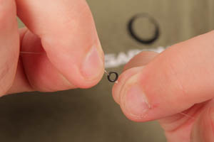 Step 2. Tie the mainline and the weak lead link to a Large Covert Rig Ring.
