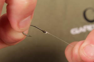 Step 4. Using a 6 inch length of 5lb Target Fluorocarbon, tie on a size 8 Covert Incizor hook.