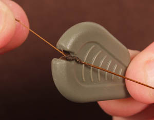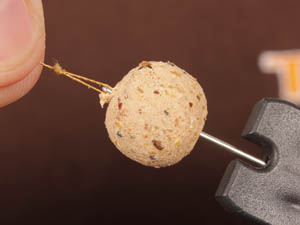 Step 2. Tie a double overhand loop to crate the hair and thread on your chosen bottom bait.