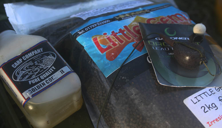 Bait must also be taken in to consideration in winter and can be scaled down dramatically compared to seasons such as spring or summer when the carp are looking to feed and pack on some weight. In most cases I have found that less can often be more in winter and by fishing with a few mouthfuls of food for a bite at a time it can often bring quick results. I like to search the swim trying to find where the fish are shoaled up rather than commit a hit of bait to one area and hope the carp find it. There are two great ways of doing this that mean your rig will always remain presentable too. The first is with solid pva bags one of my favourite tactics for a quick bite no matter what time of the year. I like to fill my bags with Little Gemz pellets and then add liquids that pack a punch. A small drop of Betalin from Hinders or the awesome Golden Corn Oil from Carp Company are two of my winter favourites. I normally use small bright pop-ups in the bags too and you cant beat a 12mm Chewy Special in the winter!