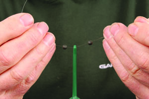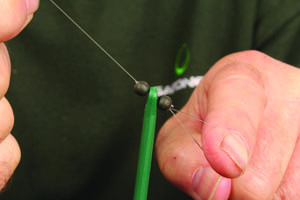 Step 1. Start off by threading a flatliner onto your mainline with a safety bead either side.