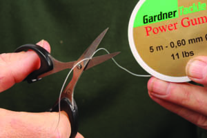 Step 3. Cut off enough 12Ib Power Gum to tie a stop knot…