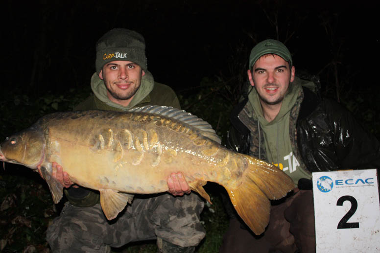 As we made the short drive to the final lake, we were in around 7th or 8th place in the standings. We knew if we could win this match and other results went our way we could still come 2nd or 3rd place overall. We started setting up with the mindset that if we won this match, we could win 3,700 Euros! We had drawn on the end of a nice south westerly wind and conditions were looking great. England internationals Billy Flowers and Jamie Londors were to our right in the peg that had won both of the previous matches, so we knew we had to be on top form to win. All of the lakes have crayfish in them, but we hadn’t experienced any problems on the other two lakes, but a few anglers had told us that in Fox they were a lot worse. The lake had been responding well to big beds of boilies, so we decided to fish all four rods with boilies from the off. We felt that the fish in the lake see the bait as a natural food almost and the fish were a lot bigger (boilie munchers) and this was the right approach to take. Both Kev and I fished a rod with an 18mm bottom bait and a 15mm bottom bait attached with a stinger of three boilies or a PVA mesh bag filled with a few crushed boilies.