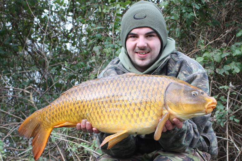 We soon got back to the swim and all the rods were placed out into the lake perfectly within seconds. My left hand rod received a take within 30 seconds and I safely landed a beautifully coloured 19lbs 8oz ghost common. During the next 3 hours we received a further three bites, Sam managing two of these up to 17lbs 6oz and me another at 18lbs 4oz’s. It was evident we had found them again, and we certainly made the most of it ending up with seven fish between us and the other anglers didn’t manage to catch anything which was a great result for us and a massive achievement for Sam to have caught another twenty.