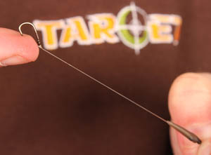 I only leave the smallest of gaps between the Target Line Stops that hold the swivel in place, leaving just enough gap to allow the swivel to turn and flex on the mainline. Too much of a gap can mean the swivel can move too freely, reducing the hooking properties of the rig as allowing for a slight bit of movement sometimes allowing the fish to get rid of the hook more easily.