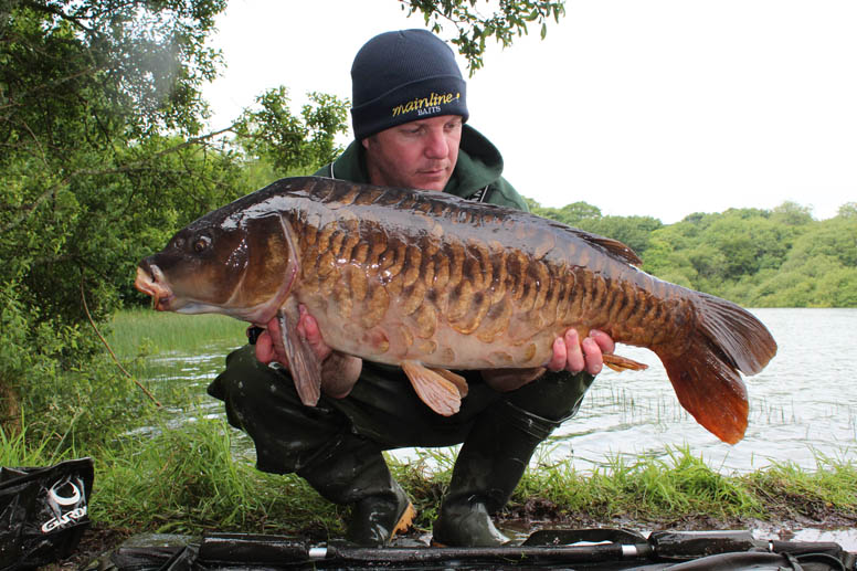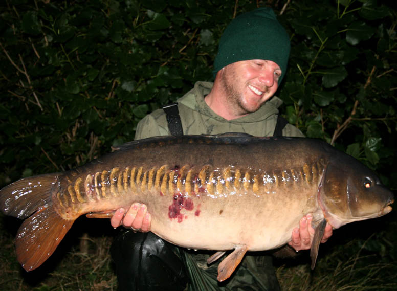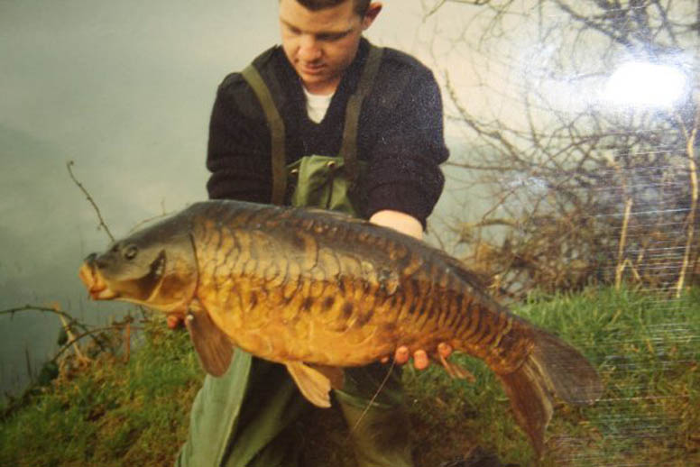 I remember it being December and cold, 1992 I think. I’d seen a fish show off the South East point, so I whacked a single hook bait out and literally minutes later landed a beautiful, dark, classic fully scaled mirror. She went 22lb on the scales, and with it being the early 90’s this was a large carp for the time. The next occasion, I caught her off the dam wall at College, literally right by the overflow and she weighted in at 21lb. I would guess this was around the mid 90’s now and this carp had shown up in a couple of other anglers nets and soon became known as the Big Fully Scaled. Around 1997/8 I was fishing the north bay at College, when I was lucky enough to catch her once again. I remember the wind hacking into the bay and I caught the fish as I was packing up. This time she was obviously doing well and had increased weight to 27lb.