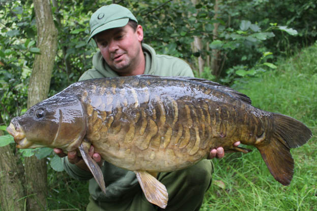 Within a couple of hours my margin rod let out a bleep, and then took off signalling something was leaving my spot in a hurry! The lake was like tap water and I could see every twist as I carefully played the fish in. I soon slipped the fish into the waiting net and after parting the mesh I could see a lovely scaley mirror sulking inside. These scaley fish really do make me smile!