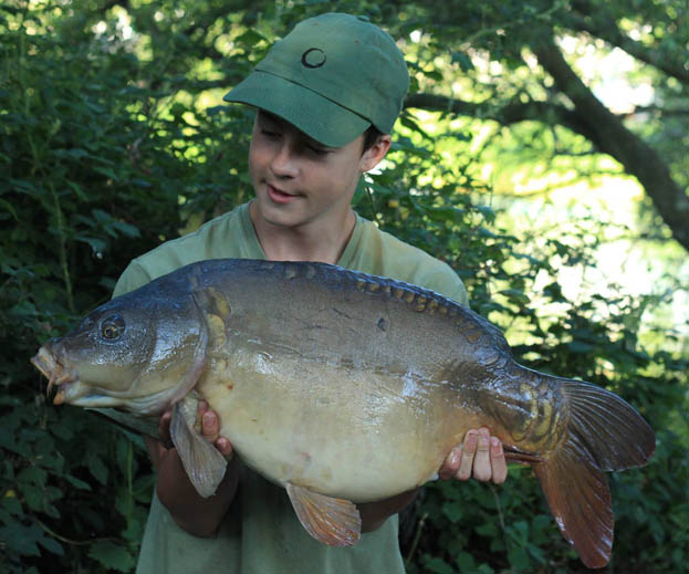 After an enjoyable few hours fishing, I returned to Rookley and got all 3 rods back out on the spots. I decided to position my right hand margin rod further up the tree line, where a few fish had showed. The rigs on all three rods were the same, comprising of a flat 2oz Gardner inline lead, a size 8 Covert swivel and a blow back rig tied using 25lb Trickster Heavy, a size 6 Covert Incizor and a large Covert Rig Ring positioned on the shank of the hook. At dawn the following morning I was woken to a one toner and after a good fight I slipped the net under a lovely 19lb 4oz mirror.