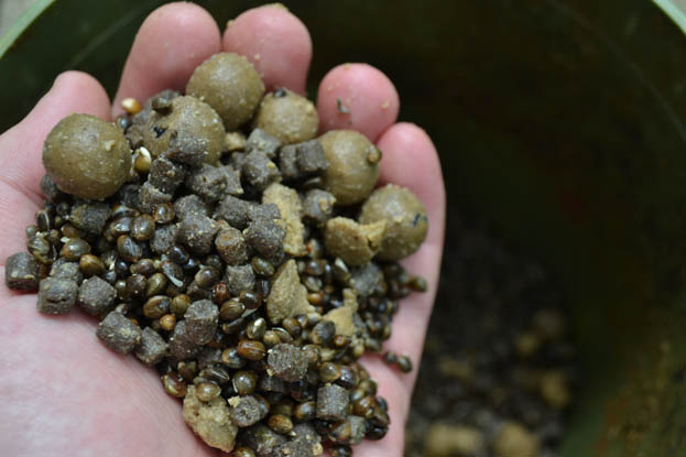 On a recent session, a friend and I enjoyed some brilliant stalking action on a small syndicate lake I have been targeting this spring. The fish in this lake love spending their time in the dense marginal snags once the water warms up, giving the perfect opportunity for some close in action. With this in mind, I had been baiting a handful of areas around the lake on a regular basis to get the fish used to finding free food in areas it was safe to fish for them. Not a lot of bait was needed, just a couple of handfuls of hemp, 2mm and 6mm CC Moore trout pellet and some chopped and whole Odyssey XXX boilies every few days, soon had the areas polished down to the gravel. Several times when baiting the area there was already fishing there having a grub around, but I had to resist the urge to fish, knowing the longer I waited the better chance of getting several bites.