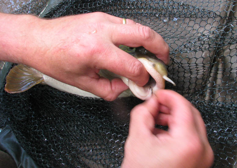 Although I could not observe the actual pickup, I was sure that the barbel were confidently picking at the bits of boilie drifting out of the feeder, and taking the bit bait on the hook with extreme gusto. All hook holds were well in the bottom of the mouth, which told me they were getting hooked before turning into the current which usually is signalled by a hook hold in the scissors. In my mind’s eye I could see them tasting random samples, then coming across the hookbait, which by now was on the aforementioned long hooklink at full stretch, with not much in the way of room to manoeuvre before they hit the full weight of the big feeder. Coupled with the fact that these fish, despite the pressure they had received since the start of season, were behaving and feeding ‘normally’ in that they were pecking at morsels and happily feeding on the spot rather than turning away or bolting as if they were scared or spooked. This was despite the bolt rig effect of the feeder mounted on the Covert Lead Clip, and seemed to go against popular perceived convention. Just how I like my angling conundrums! To register the bite effectively, I had to cast slightly upstream (into Lewis’s swim, good angling!) and gently tighten into the feeder before paying a foot or so out into the flow. Most bites were either a drop back or a gentle pull on the semi slack line, just like twitcher hitting for carp. Full on screamers still occurred, just not as abundant as the tweaks and taps I was intently studying. This could be down to both the feeder being slightly dislodged by a fish, or sometimes just the flow doing it’s thing. Heavy feeders reduce the effect of the flow, and you are left with the only possibility left, a bite. Another example of eliminating variables and acting upon pre planned and predicted results, as in I expect a drop back and react accordingly with a swift sweep of the rod overhead. I rarely strike into thin air when fishing like this now, so there must be some substance to the hypothesis.