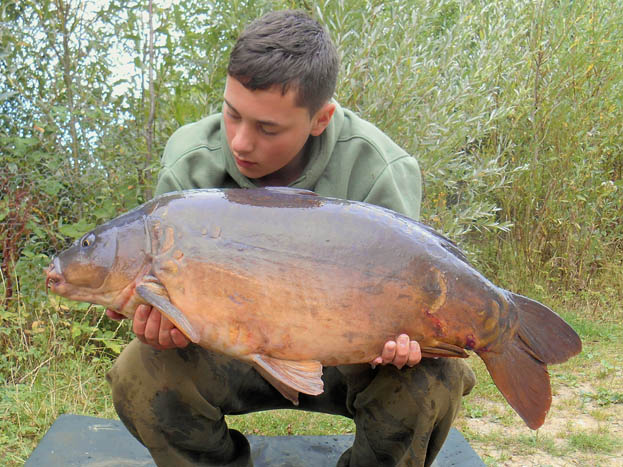 I decided to try and get an area going again with the mixers, as the odd one or two were showing themselves. Within a few hours of constantly spodding mixers out there seemed to be more and more of the carp grouping up in the area. It took me most of the morning to get them competing, and then, using the same tactics I cast out beyond the feeding carp and slowly reeled back into the area. After a patiently waiting I was in again, my clutch screaming off with an angry carp. After a worthy fight I slid the net under a beautiful looking mirror that went 29lb 10oz!