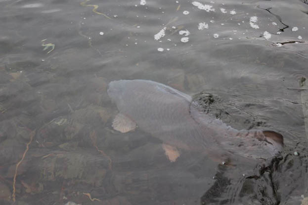 With a damp chill in my bones, I awoke the next morning to the pleasant sound of a take! A mirror of 24lb was a nice way to christen the new swim and gave me a good feeling that I’d made the right move after all, even if it turned out a bit wet in the end. The stiff breeze that was blowing into the swim strengthened before turning into a gale, chilling the whole bank. I checked the margins and checked again, yet nothing was to be seen along the windward bank. It was screaming carp even if the wind was slightly on the chilly side. I began to wonder if I had got my location wrong, especially when I watched the odd show at the other end of the lake on the back of the wind. After reading the conditions the margin rod went halfway down the slope in about 6 feet of water. I found a nice quiet area out in the open water for the toher two at a depth of 18 feet. This area had seen a couple of kilos of Trigga over the past day or so (that’s really heavy baiting for me if the truth was known).