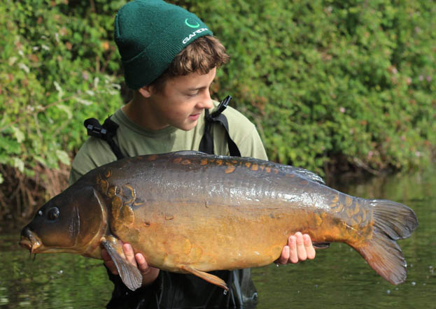 At half six the following morning, I had a take on combi-rig and after a great scrap I netted a lush 23lb 8oz mirror. Shortly after getting the rod back out, the rod on the PVA bag was away and I landed a 16lb 14oz mirror. I popped up to see my mate in the next swim, who kindly came round to do some pictures.