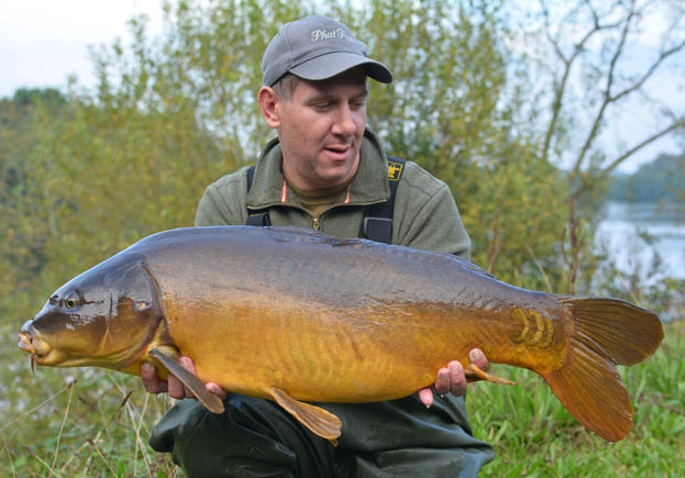 After un-tangling all the lines and unhooking the fish (which was still in the net) I thought it was the Snubby Mirror and she looked at a good weight too. Being on my own I didn’t want to get her out of the water, so I decided to transfer her from the net into the retaining sling until first light when I could get some help. On the scales she went 44lb 8oz and was one of the Roach Pit Carp that I really wanted to catch. Happy Days!