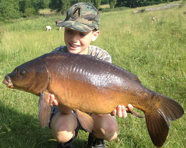 After the rods were cast back out and I’d enjoyed a cup of tea (Grandad was on catering and netting duties whilst also fishing!!) it was evident the fish were drifting into the pads again, so in the rods came and I went off in search of another carp. It was not long before I had another one in the net, this time a hard battling 8lb mirror.