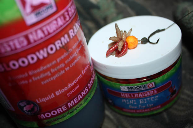 I chose to fish with the same tactics as I did in practice, all three rods baited with medusa rigs with fifteen maggots on the hair and an 8mm CC Moore Mini Bite pop up sat just underneath them making the rig semi buoyant. I baited with maggots and CC Moore 10mm Equinox boilies and my spod bait was enhanced with a helping of Bloodworm Extract also from CC Moore. I found a spot at 96 yards which I baited reasonably heavily hoping that when the large shoals of fish got on my spot, I could potentially receive multiple takes.