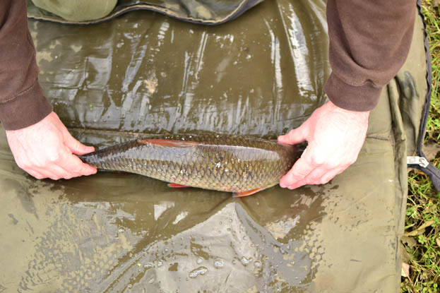 During my first couple of sessions I caught plenty of fish and soon began to put a picture together of where I thought I thought a big fish might put in an appearance. I arrived for my third session late one morning and after walking the stretch, I was soon set up in an area that I had one of those ‘gut feelings’ about. As it was a blustery day, float fishing was out of the question, so I settled for a small maggot feeder. My first cast produced a trout, which I prayed had not wrecked my swim. I left the second cast for around five minutes before retrieving and casting out a fresh feeder full of maggots. Shortly afterwards the tip pulled round as the feeder dislodged and a strike was met with what I presumed was another trout. I played it towards the waiting net and in the clear water I soon noticed that my assumptions were wrong and I was attached to a monster roach. I gingerly played it for a couple more nerve racking minutes before I was able glide it over the waiting net. Parting the mesh it was indeed a monster, which tipped the scales a 3lb 3oz 8dr. An ambition achieved!