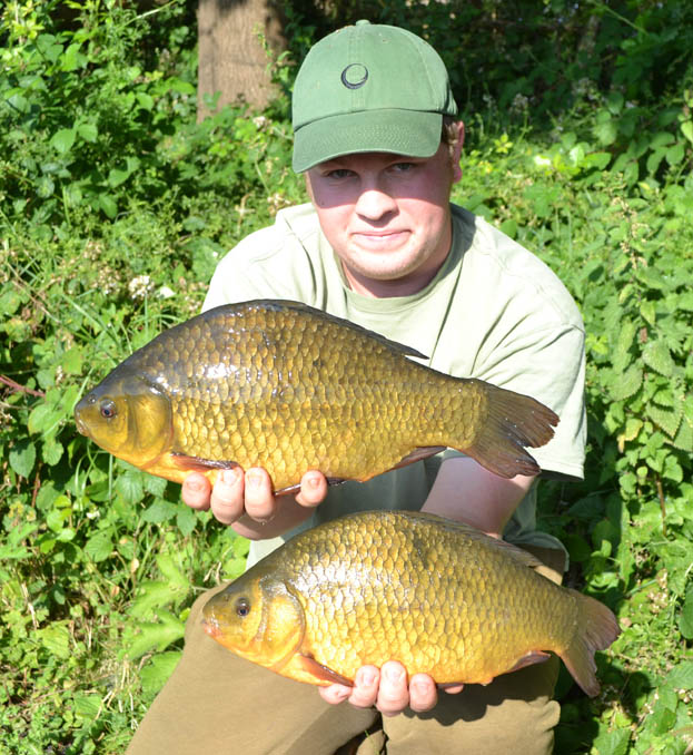 The fish spawned several times in the coming weeks, and being busy with work my mind turned to other species to fish for to pass the time. After a chat with Alan Stagg the gear was being loaded up heading for Surrey for a bit of crucian fishing with some surface fishing mixed in. The day was extremely hot and the fish were suckers for a mixer- we couldn’t spod out enough! I think I ended up with around 10 fish the biggest a tad over 25lb, but as the sun started to dip it was time to get the crucian rods out. Small method feeders, 5lb Target fluorocarbon hooklinks and a hair rigged piece of corn fished over groundbait soon had the bobbins twitching but only the suicidal tench obliged this time. I was back the next week to right the wrongs, and after wading through about 50 tench in a day I was finally rewarded with a brace of crucians weighing 2lb 15oz and 3lb.