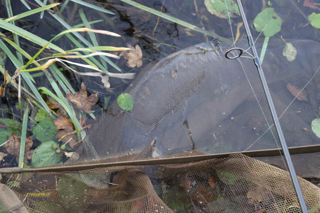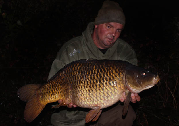 Having chosen the furthest walk from the van instead of the cold swim that was only 100 yards or so away, I was hoping my choice was going to be worth all the effort. Carefully manoeuvring my barrow down the muddy path, I eventually made it round the lake to the swim. Having bust a gut and sweating like a pig, I just about got the rods out and set up before the wet stuff came (low pressure equals rain). With the kettle on and watching the water like a hawk, a quiet couple of hours rolled by without a single bleep coming to my rods. With the light starting to fade, I felt quite happy and waited to see what the night would bring. Well, I was happy till I saw a fish roll out in Roy’s over the other side of the lake and yes you guessed it on the end of the wind!
