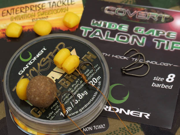 After setting up camp I located a lovely gravel bar at range, just short of where the fish had been showing. After measuring out the rods, I got to work with the spod and deposited a bed of 4mm trout pellets from CC Moore, two tins of corn and some crushed XXX boilies on the top of the bar. I soon had three rods positioned tightly on the bed of feed, a tactic which can often produce multiple bites. My rigs consisted of 12lb Pro Light Blend main line, 3 feet of Plummet leadcore, Covert Lead Clip and Tail Rubber, six inches of 15lb Trickster Heavy and a size 8 Covert Wide Gape Talon Tip hook. Hook baits were my ever faithful balanced stacks of corn from Enterprise Tackle or a XXX boilie tipped with a piece of buoyant corn.