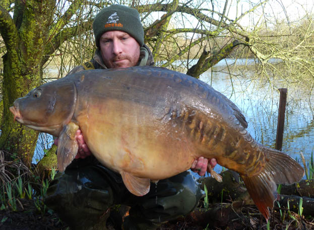 Not long after this short stint on the local water, I moved onto my new syndicate lake and after only a few sessions I managed to get to grips with the place and managed a brace of thirties in early February, with the biggest weighing 34lb 4oz. Only a couple of weeks later I caught my first English forty pound carp, a fish known as the ‘Lumpy Half Lin’ alongside an ancient looking 26lb 6oz mirror. Landing my first English forty was a life long dream and an ambition achieved!