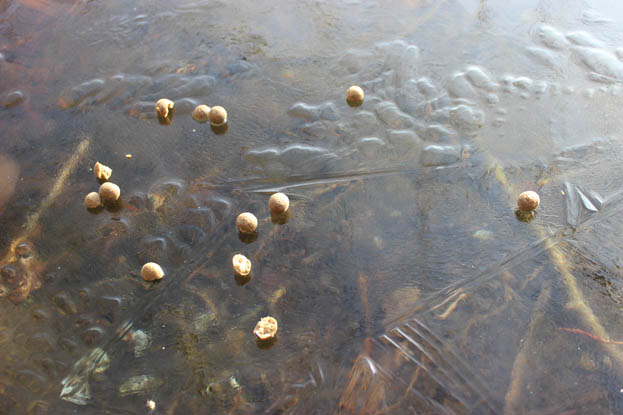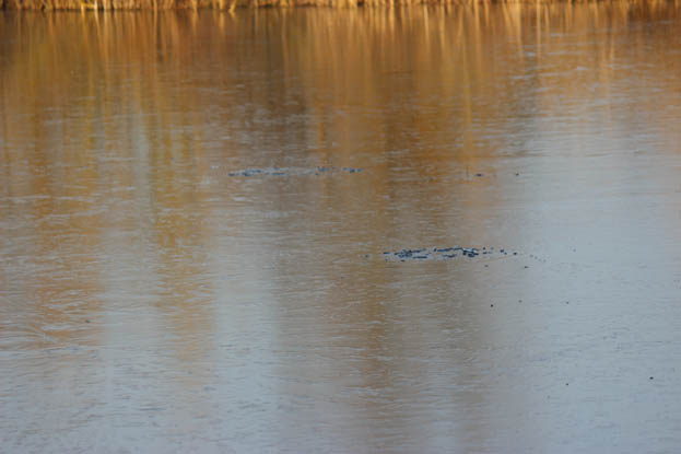 Another area I found was right down the other end of the lake, and there must have been ten or twelve big circles of trapped air under the ice, for the world to see! How’s that for a tip?