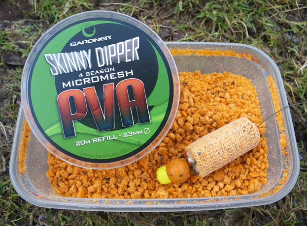 My plan for one rod was to fish a wafter over an area that I had put four spods of Mistral baits Ten-Pellet and broken Rosehip boilies mixed with a few drops of one of my favourite tipples! Rig wise I decided on a simple D-rig tied using various components from the Gardner Tackle range, one of these being their excellent new hook-link material the new super supple Ultra Skin. I decided to use my second rod as a roving rod, re-casting it to different spots throughout the day. On this rod I choose to adopt a simple bottom bait rig in conjunction with a small stick mix made up from finely crumbed Rosehip boilies, my hookbait was to be a single 15mm Rosehip boilie tipped with half a yellow wafter for visual attraction. With the temperature really low I opted for Gardner Tackle’s Skinny Dipper four seasons pva mesh so that I knew there wouldn’t be any problems with it melting completely. Before each cast I gave the pva stick a boost with some of Mistral Baits pva friendly Rosehip and Betaine Wizard Spray as the water was quite coloured after the previous week’s rain.