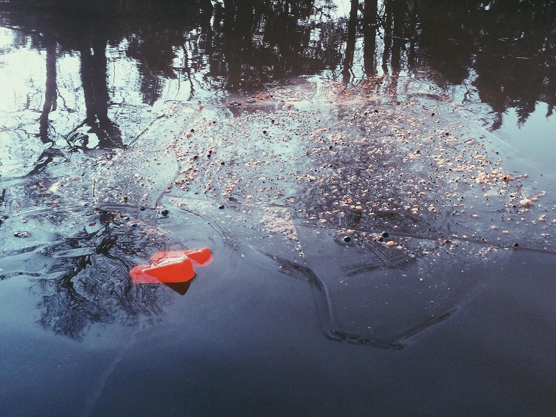 The lakebed was very silty and we discovered over 2 feet of the black stuff in some areas. We found some firmer areas, where the carp had clearly fed in the past, but this experiment wasn’t about reigniting an old spot. We wanted to start a spot from scratch and where better to start than in the deepest silt we could find.