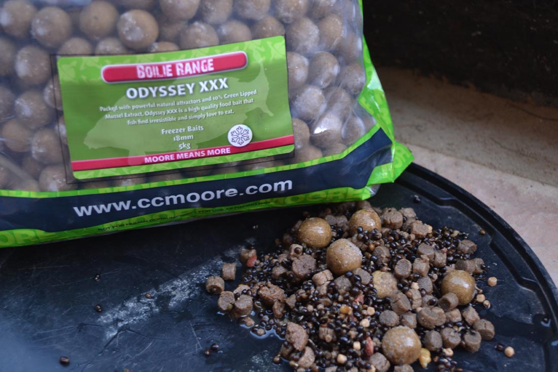 I arrived in the early afternoon, and set off on a wander round to see if the fish were anywhere to be found. With my Polaroid’s fish were evident basking in the sunshine almost everywhere. This gave me a plan, baiting and waiting in the middle area of the lake, attempting to stop groups of fish as they passed around the lake. My gear was dropped in a central swim called Armchair, and a big bucket of Odyssey XXX, hemp, mixed sized trout pellet and a good helping of the new Pacific Tuna boilies. Armchair is one of the most popular swims on the lake, covering the middle area, and there is a huge spot straight out in-front that sees vast quantities of bait every year. It goes against what I normally like doing by going against the grain, but the fish know where to go when they want to feed so the whole bucket was spombed to the area and 3 hinged stiff rigs placed on top to counteract the light covering of silk weed. Rigs were made up of 20lb Trick-Link booms and 25lb Trip Wire, and a super sharp size 6 Covert Chod hook baited with a white NS1+ pop-up. The Pro XM mainline was fished slack from the tips to give me the best presentation on the undulating bottom.