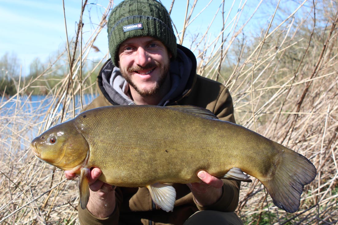 It wasn’t until 5am on my second morning that things kicked off properly. I went on to land six more tench. I kept topping the bait up and kept getting takes. The best bit was hooking a 6lb 6oz tench and then moving one of the other rods out of the way to stop the line getting in the way. Straight after doing this the other rod bent over and line began peeling off. I struck into what felt like a good fish and called for help from my mate Dan.