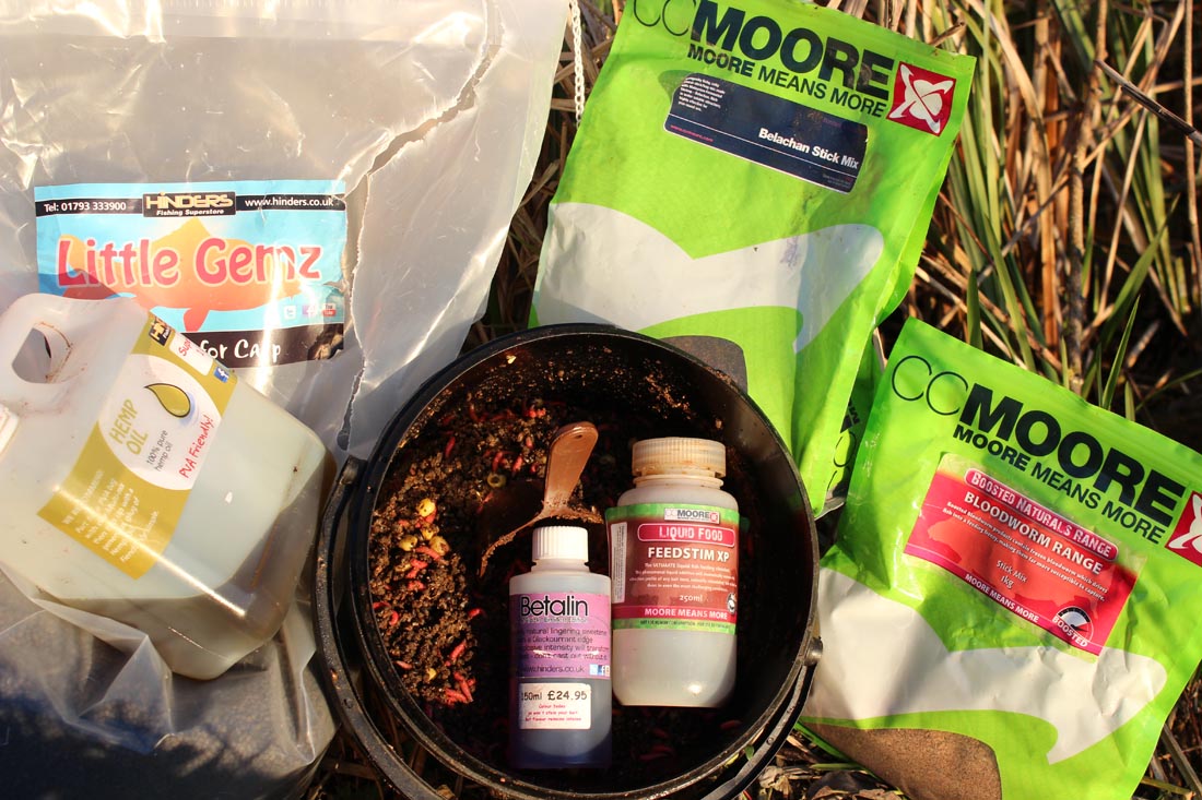 At first light I noticed a couple of fish rolling at around sixty yards range. After a couple of exploratory casts with a marker float, I soon pin-pointed a lovely clean area which the fish had obviously been showing over. I soon had a mixture of Hinders hemp, Little Gemz, dead and live maggots, CC Moore’s Belachan stick mix, Hemp Oil and Betalin and Black and CC Moore’s Feedstim deposited over the area.