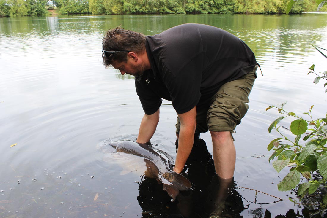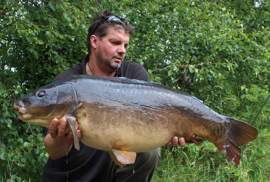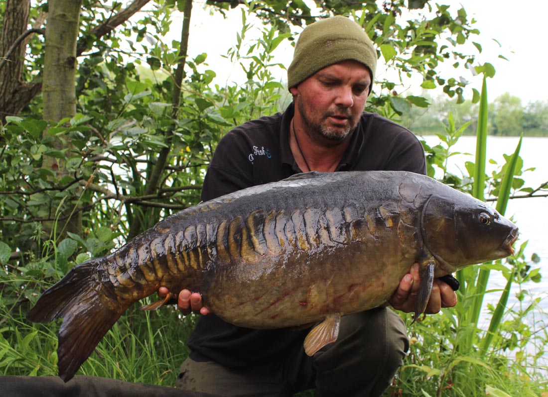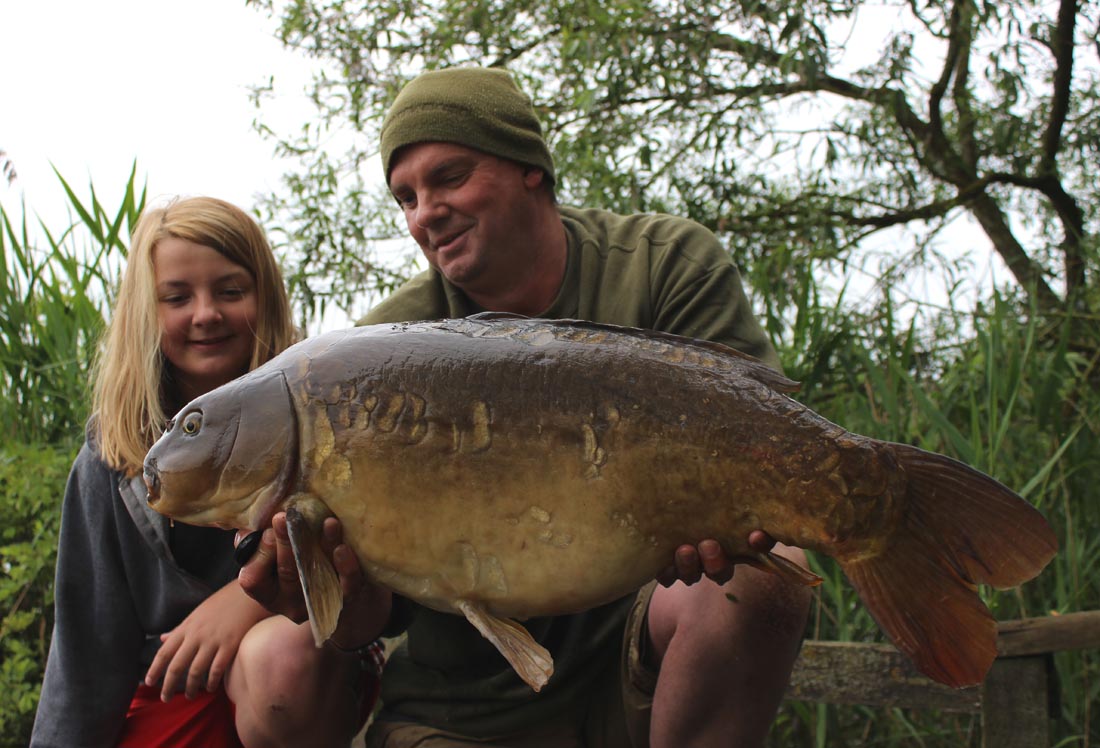 Back in my main and now well rested swim, I got the rods back out and the night soon rolled by after a day sat in the hot sticky sun stalking. Without a single sign of spawning around the lake I settled in for my last night on the bank. I must have been very tired and I couldn’t believe I slept right through. I woke up late without a single bleep, which wasn’t the best feeling I had that trip! I planned to pack away mid-morning as I had planned to take my daughter Lucy down the Mangrove Swamp for the weekend fishing, she loves it as much as me to be honest! Soon a few guys came round and whilst we were chatting, the rod on my main baited area went into meltdown. With phone cameras and the like going from all angles, a 33lb 15oz mirror known as Cut Tail rolled into the waiting net. What a fantastic way to end the session and again it married up with the other bite times, so that something else logged in my head for the next trip! The guys took some great water shots, so thanks again and I will look forward to returning the favour next time.